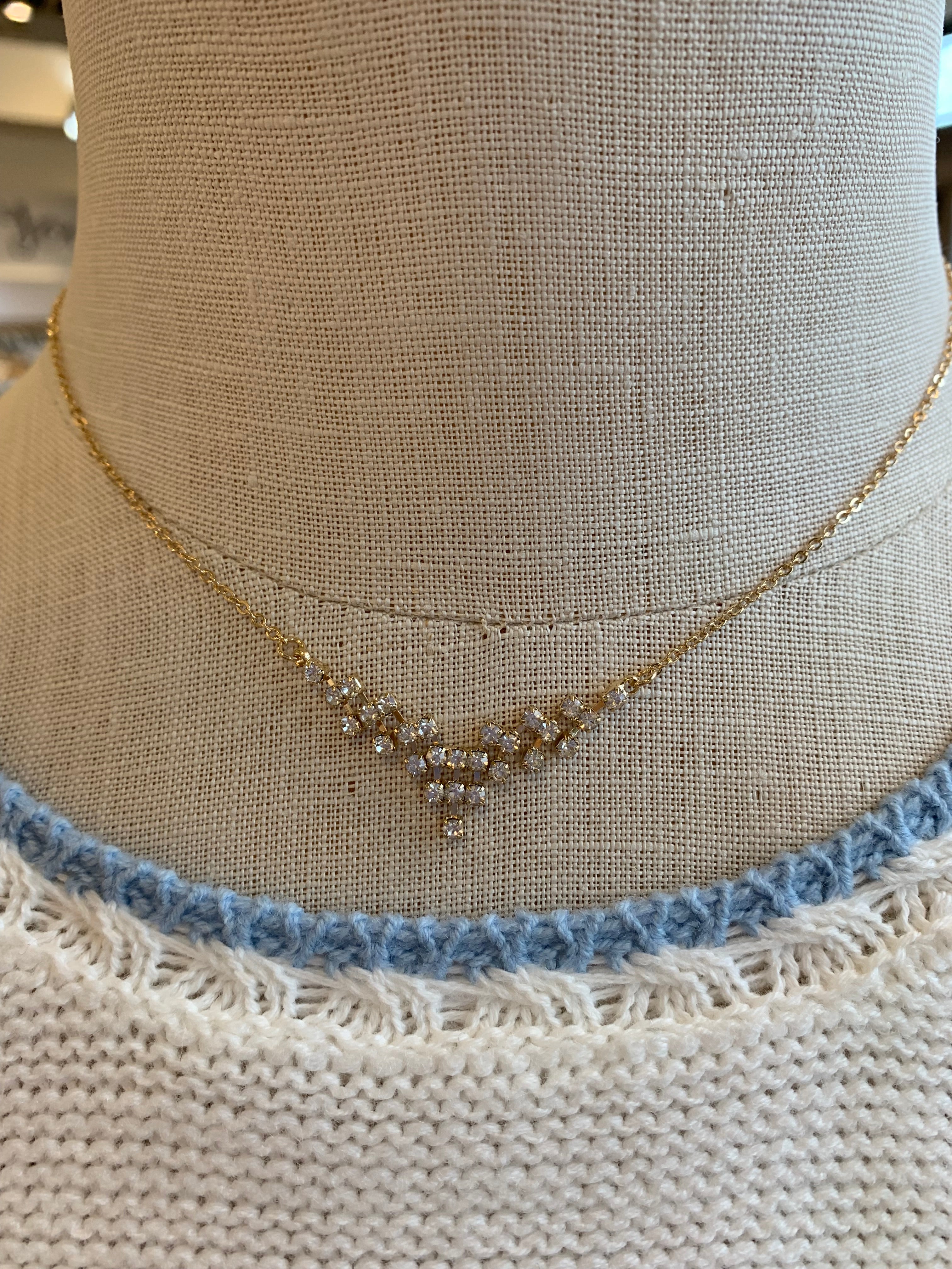 V Shaped CZ Stone Pendant Necklace