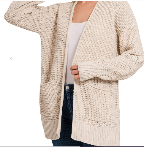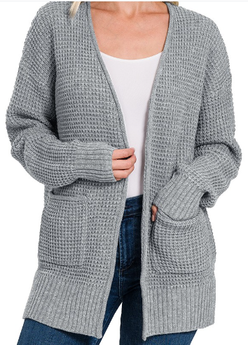 Waffle Open Cardigan with Pockets