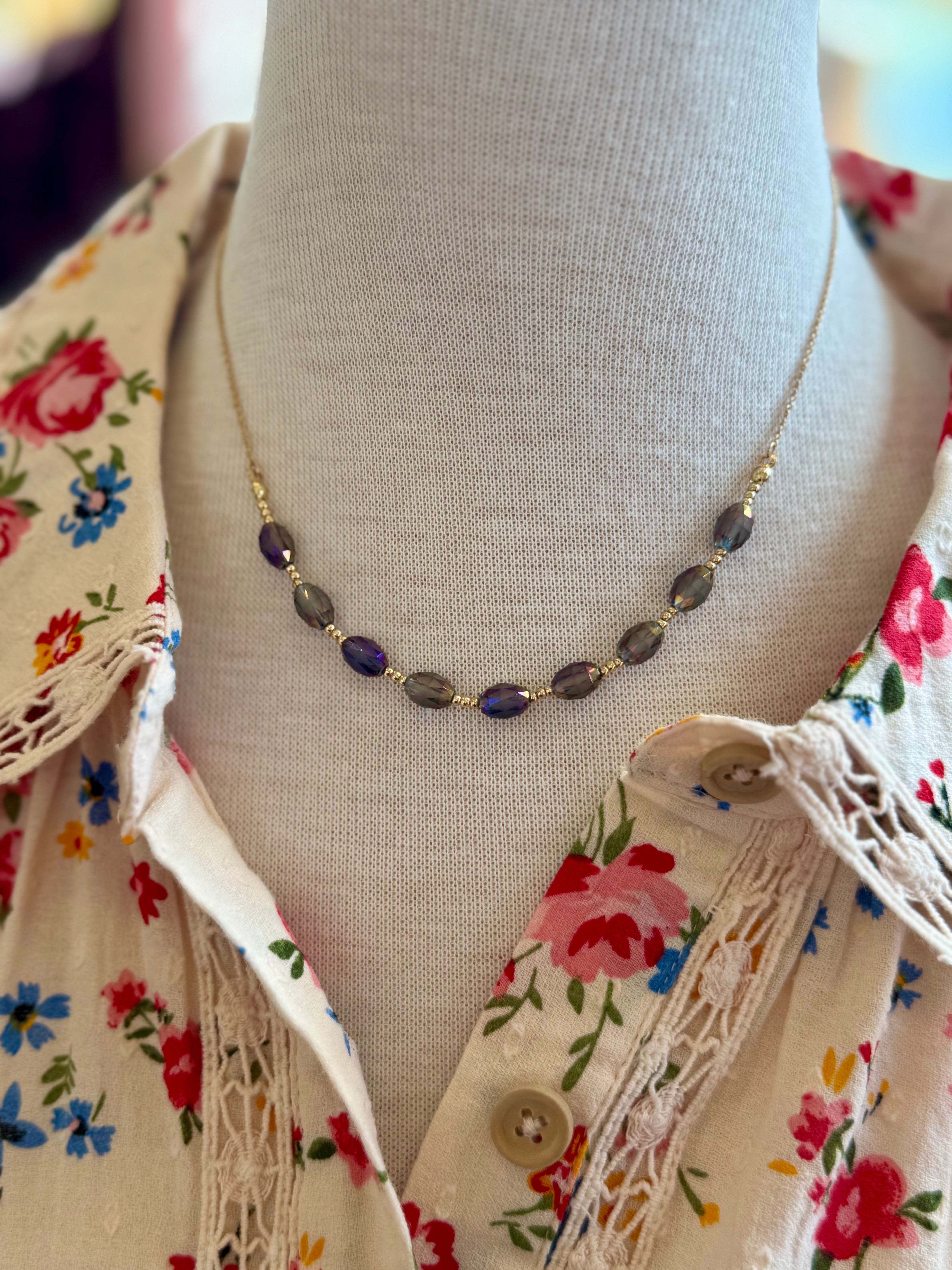 Chain Link Necklace with Beaded Accents