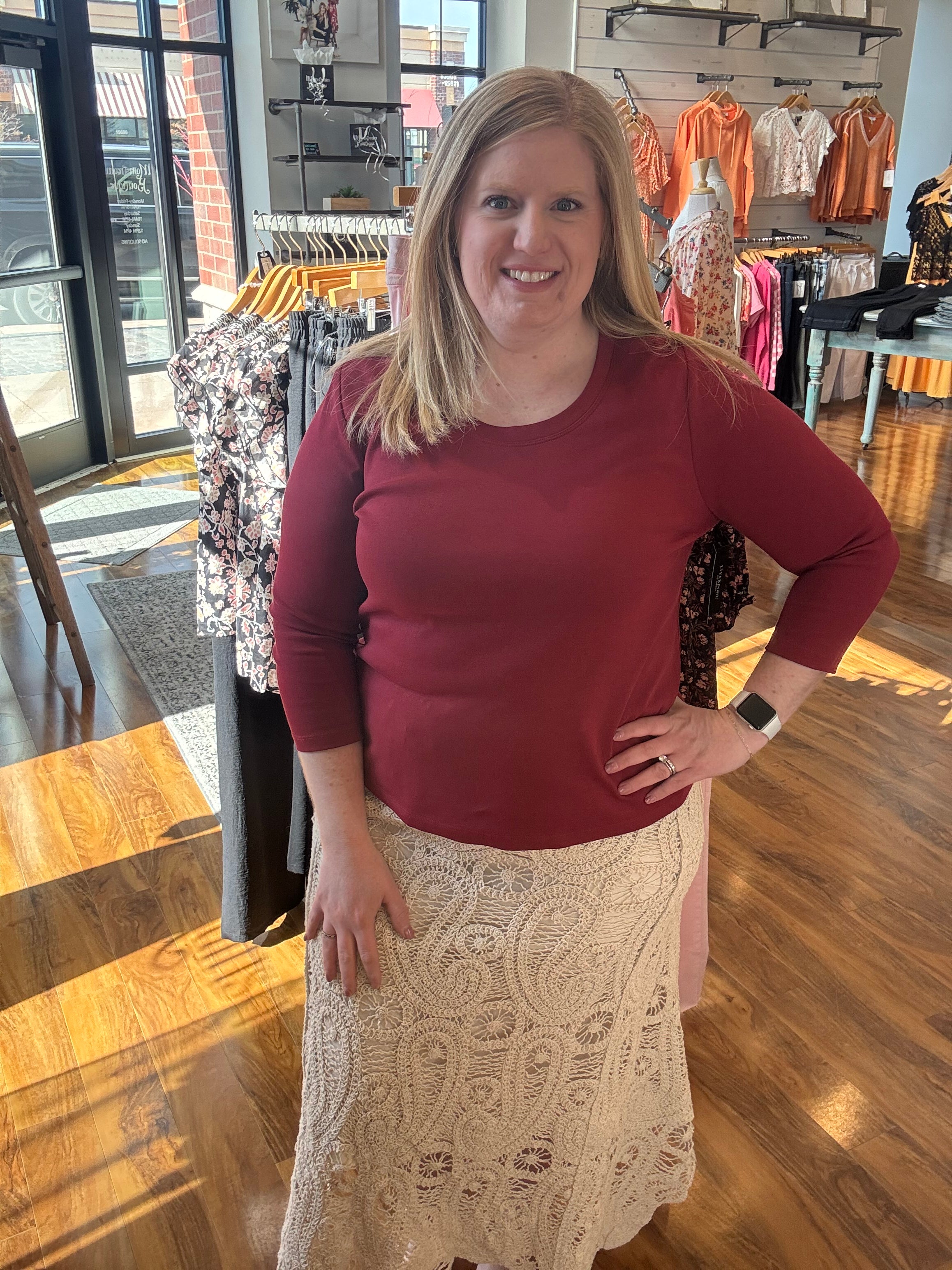 Elbow Sleeve Notch Knit Tee