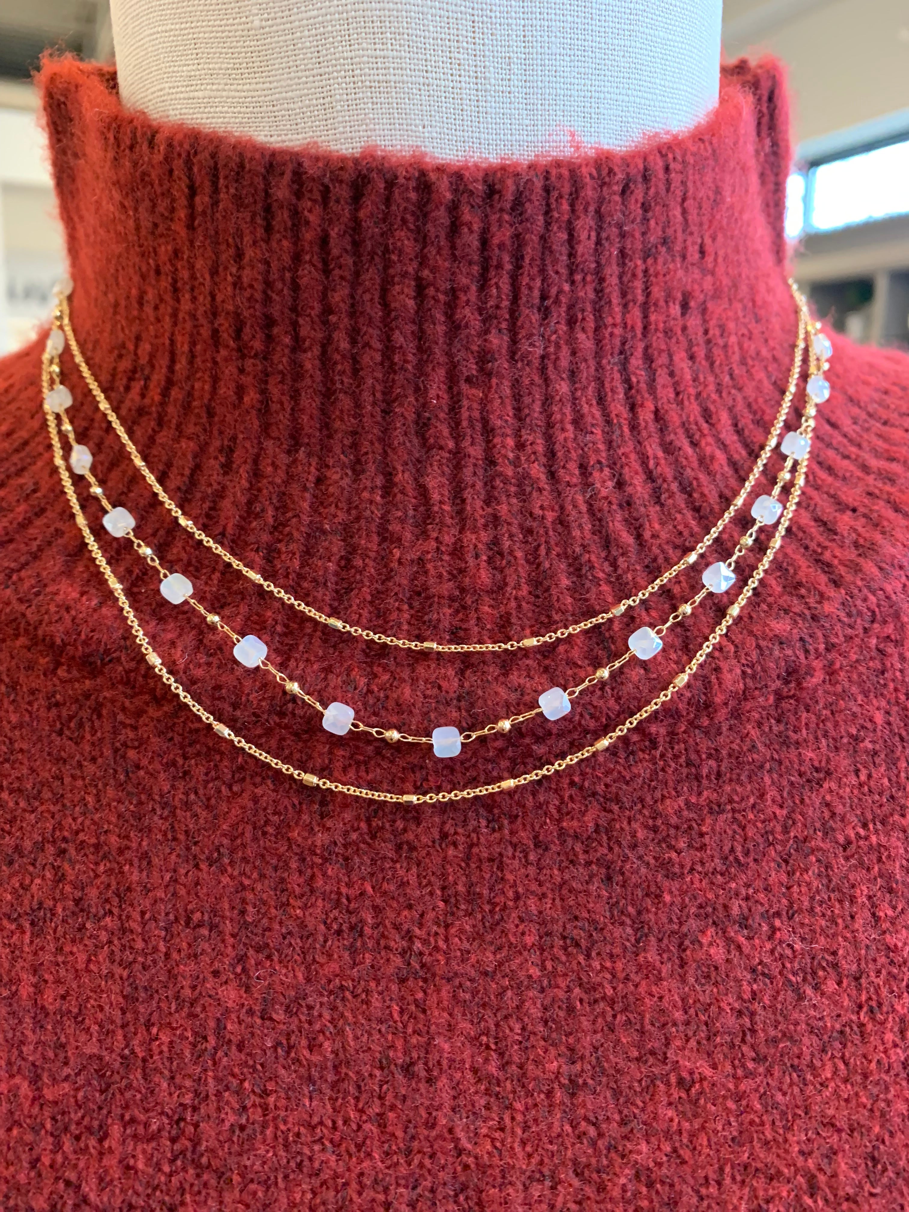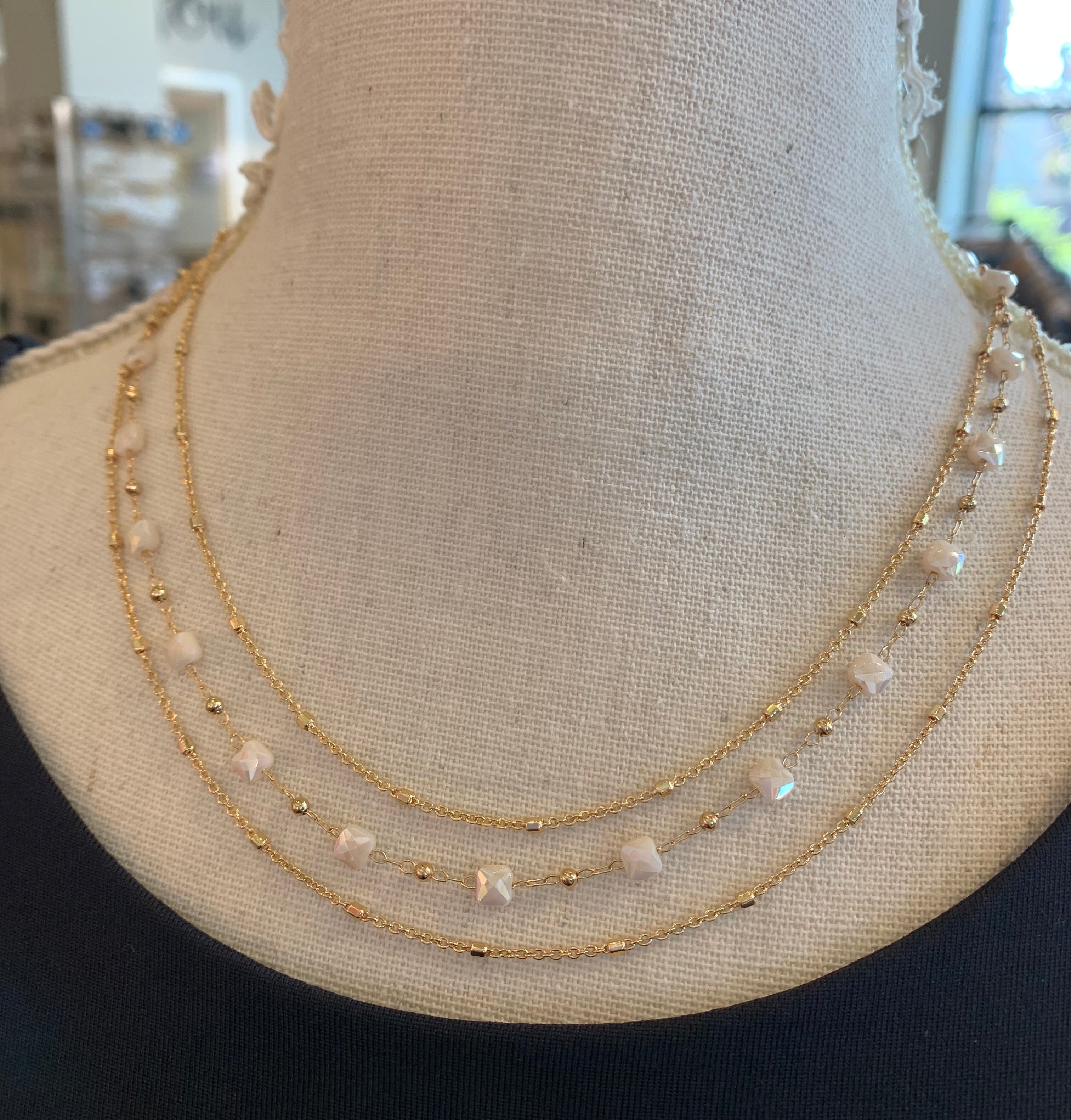 Faceted Glass Beads Layered Chain Necklace