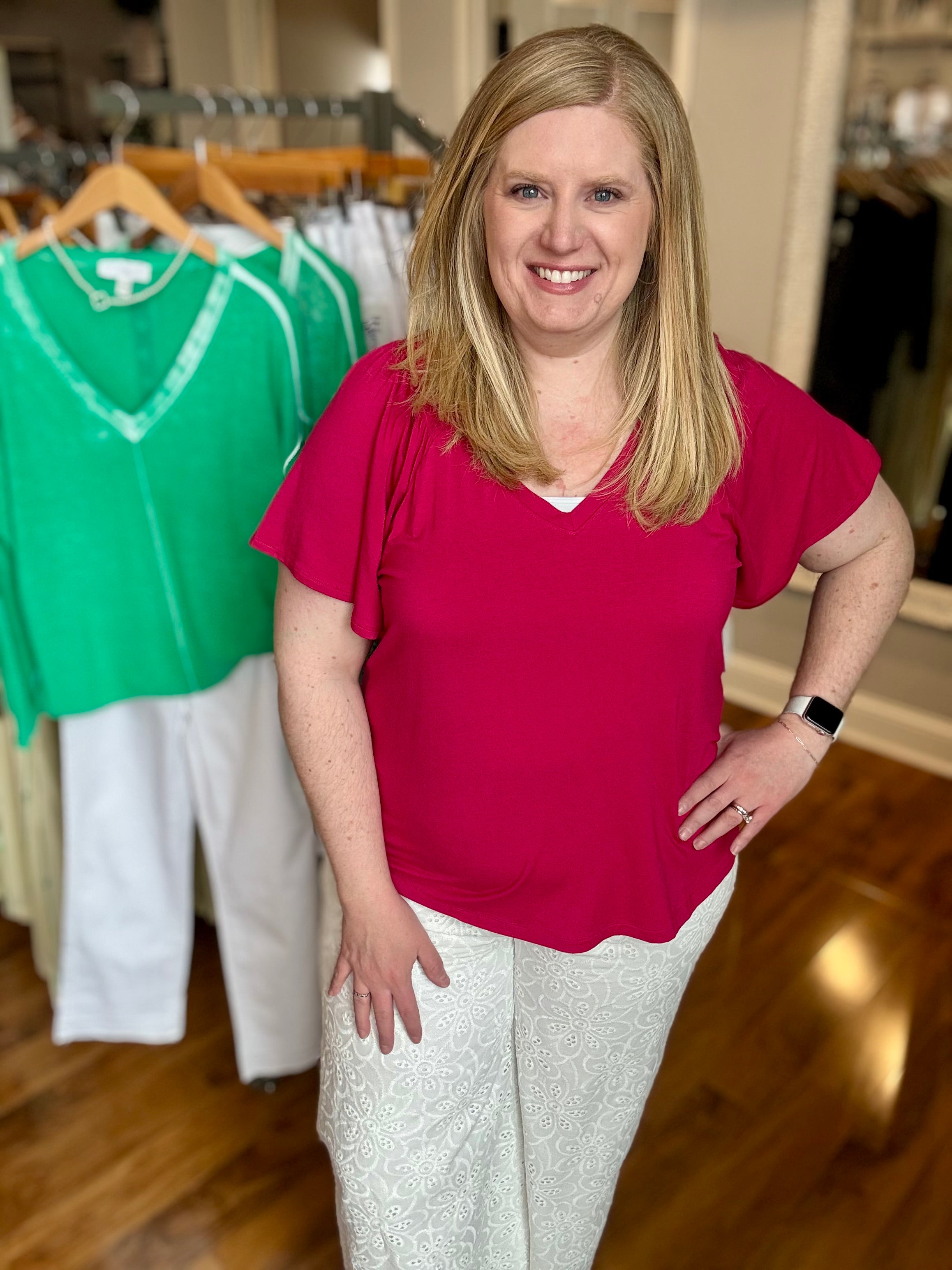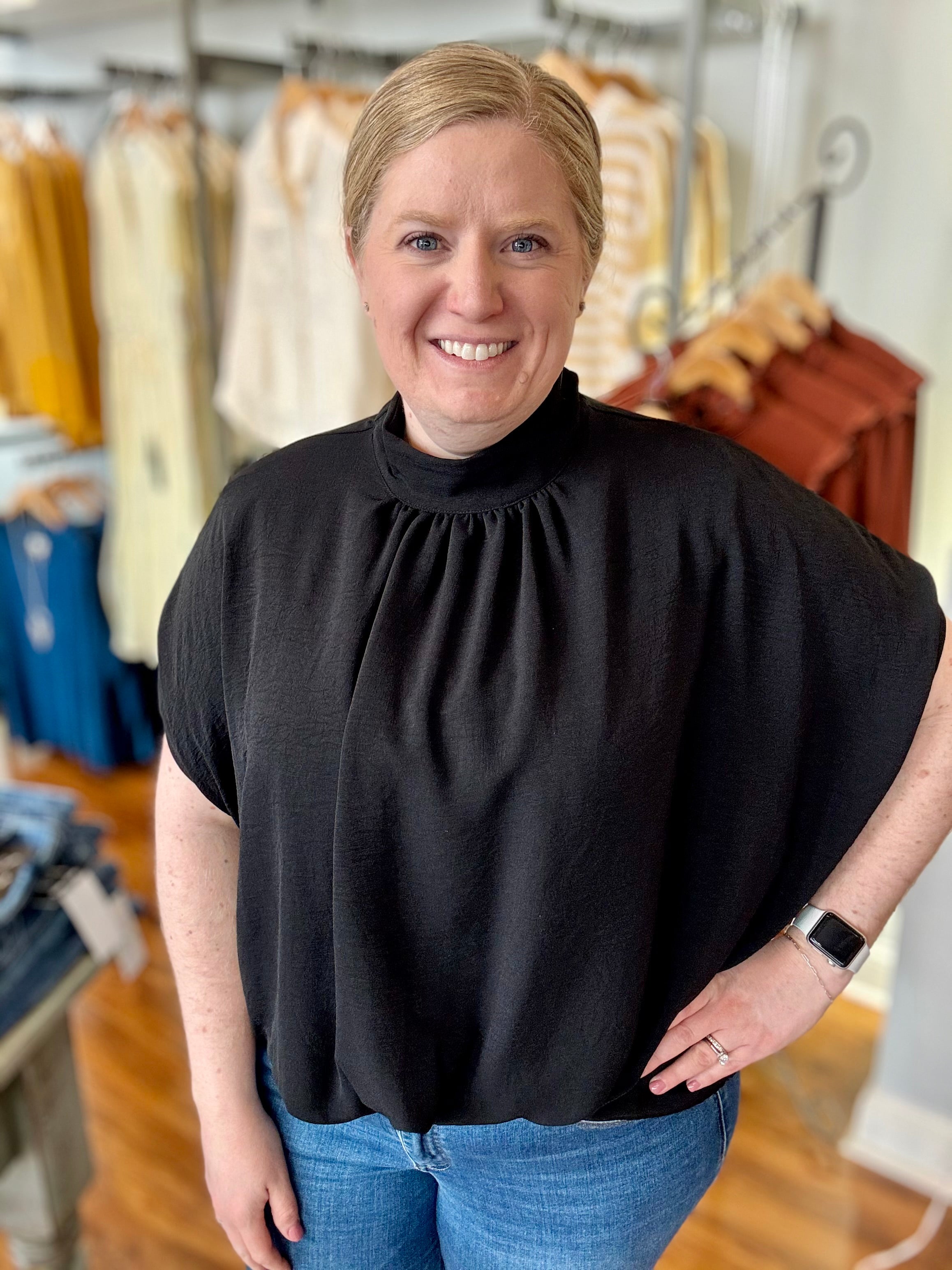 Flutter Sleeve Popover Woven Top