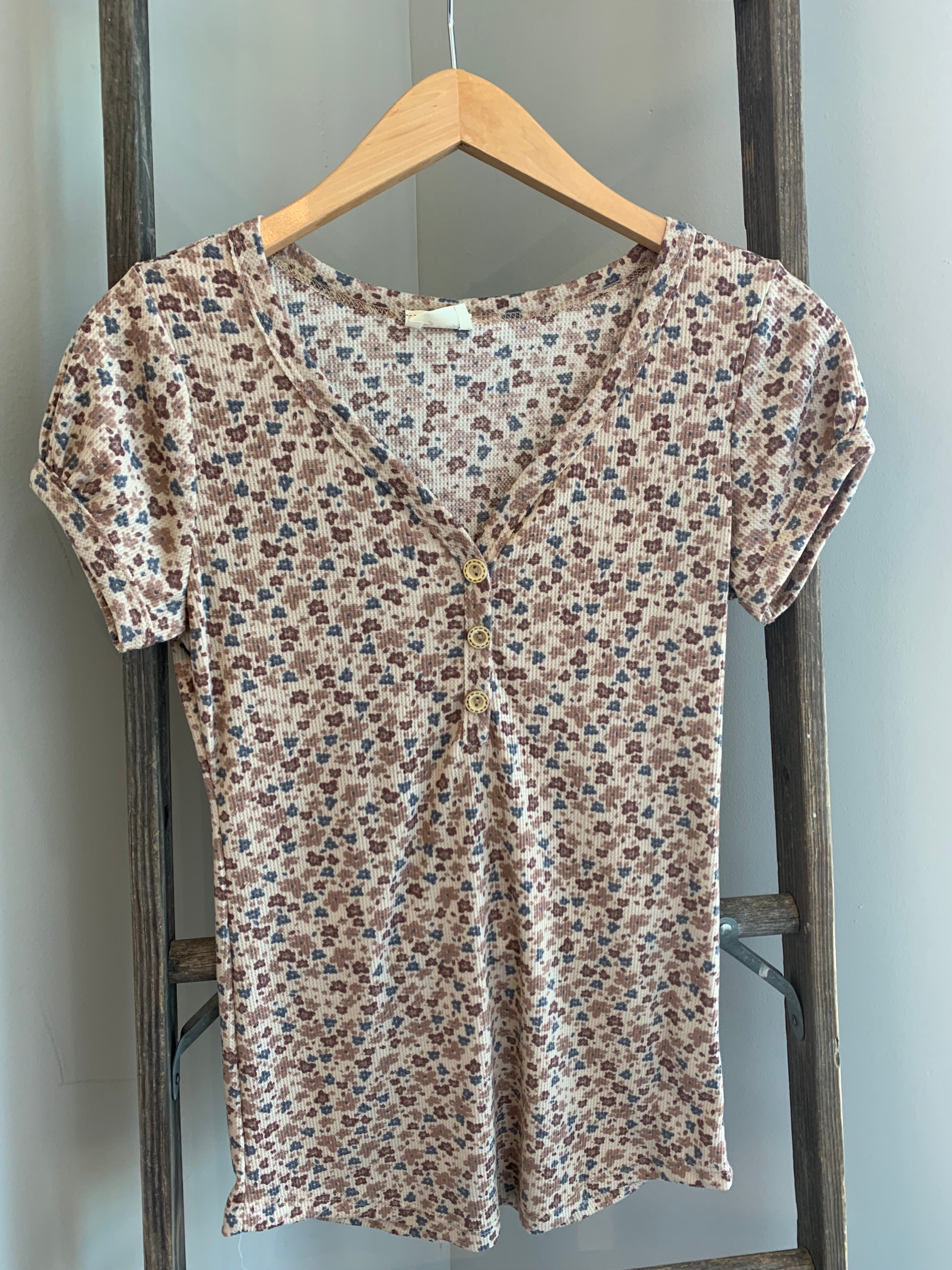 Floral Ribbed Henley Top