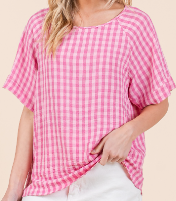 Gingham Print Short Sleeve Top