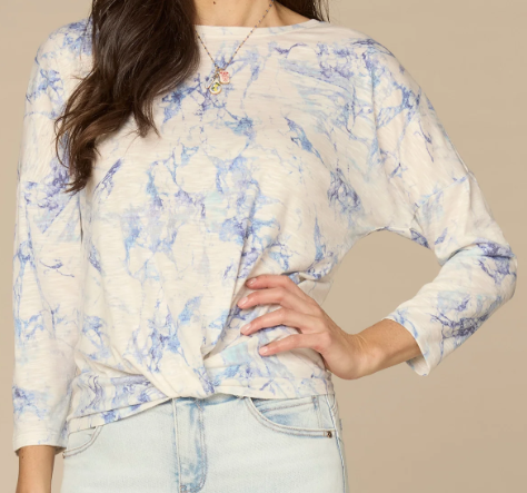 3/4 Sleeve Twist Hem Printed Top