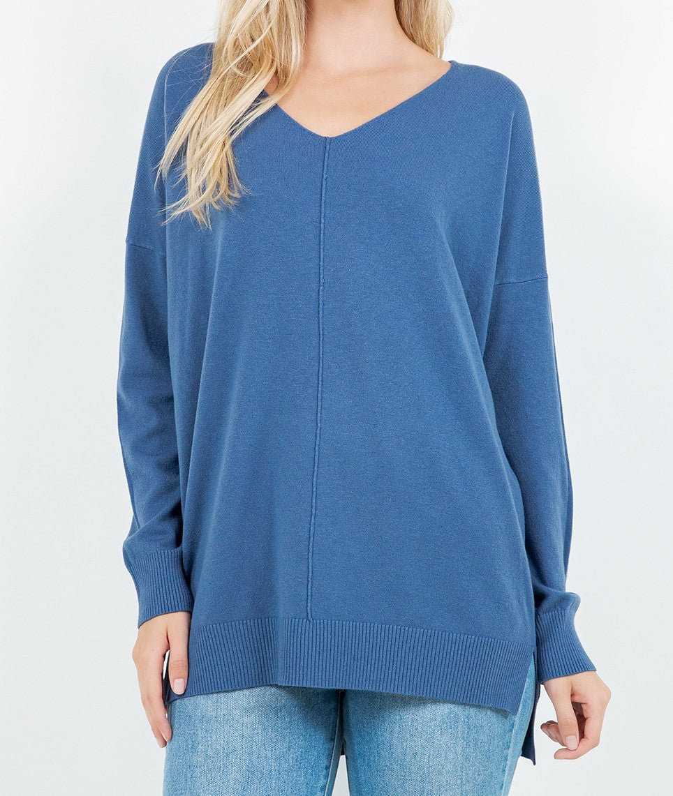 V-Neck Sweater with Front Seam Detail