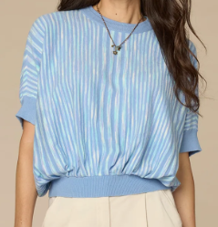 3/4 Bell Sleeve Crochet Striped Sweater