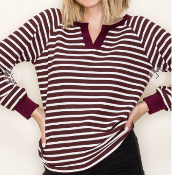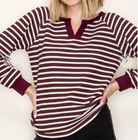 V-Neck Striped Long Sleeve Top