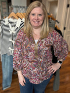 Blouson Sleeve Ruffle Edge Printed Top - HQ