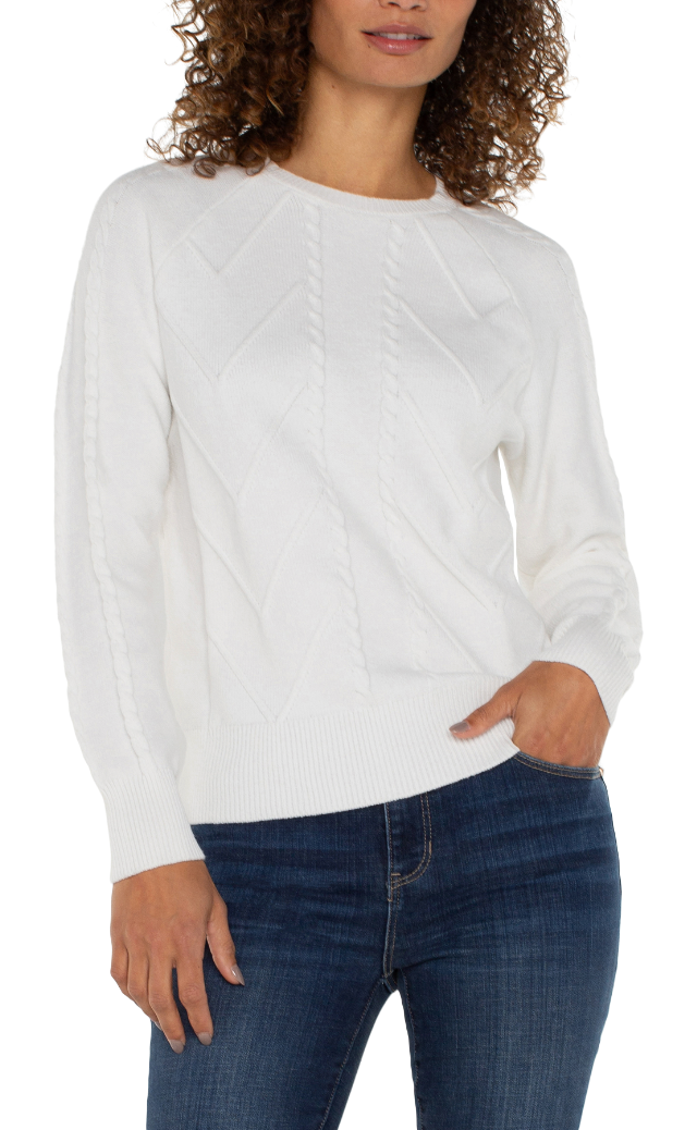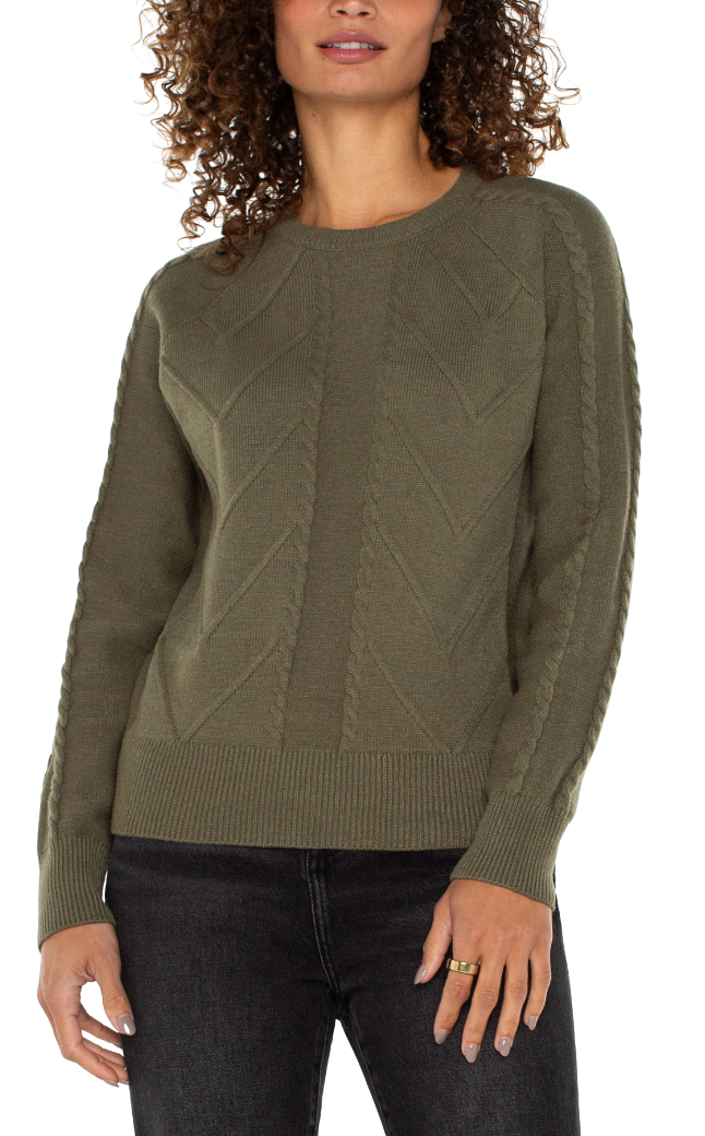 Cable Knit Crew Neck Raglan Sweater - HQ