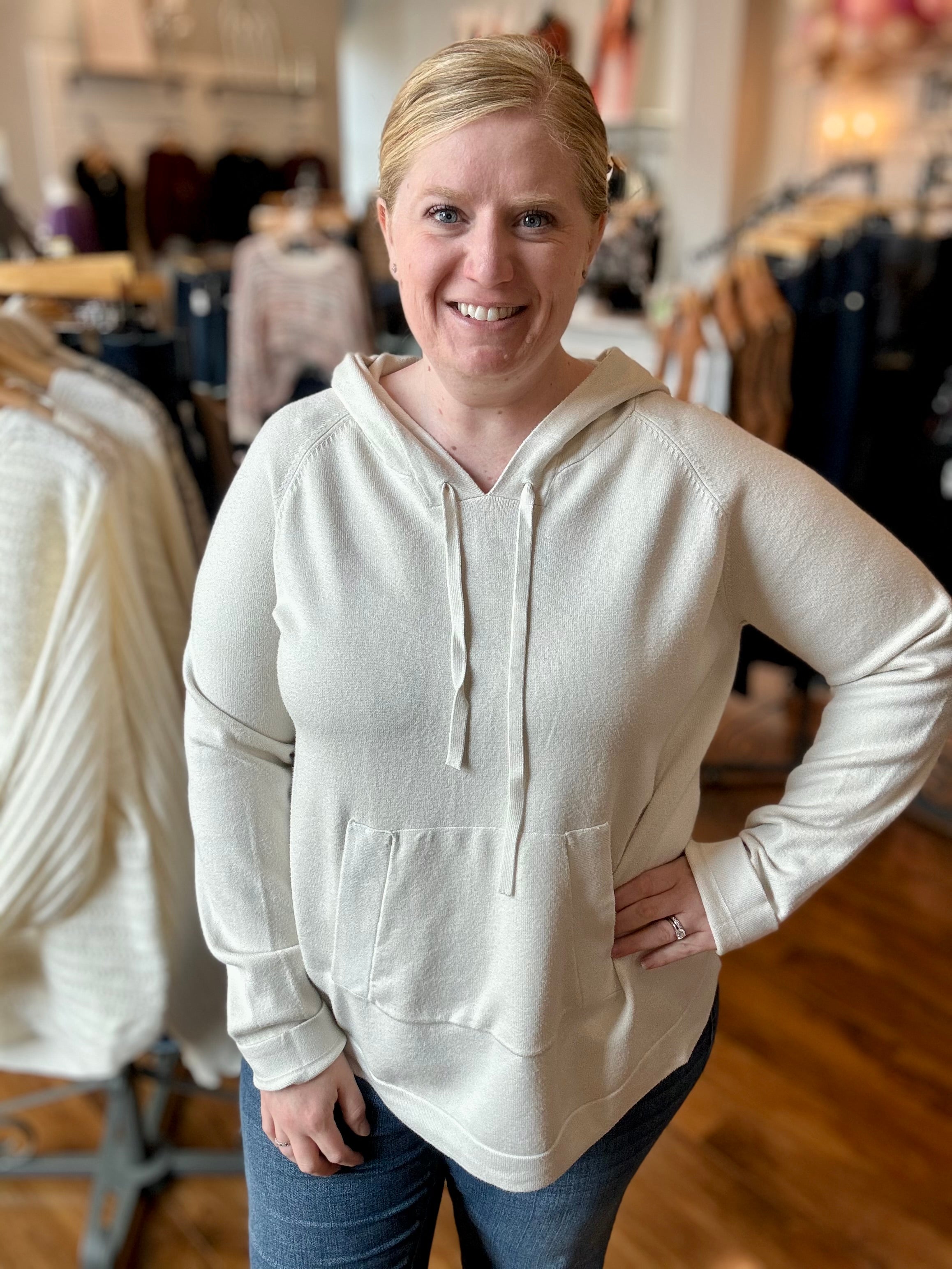 Designed with comfort in mind, this sweater features raglan sleeves and a hoodie for a relaxed and sporty style. Ideal for layering over your favorite casual outfits, this sweater is perfect for laid-back weekends or running errands in style.