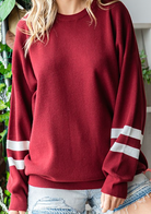 Ribbed Knit Sweater with Striped Sleeve Detail